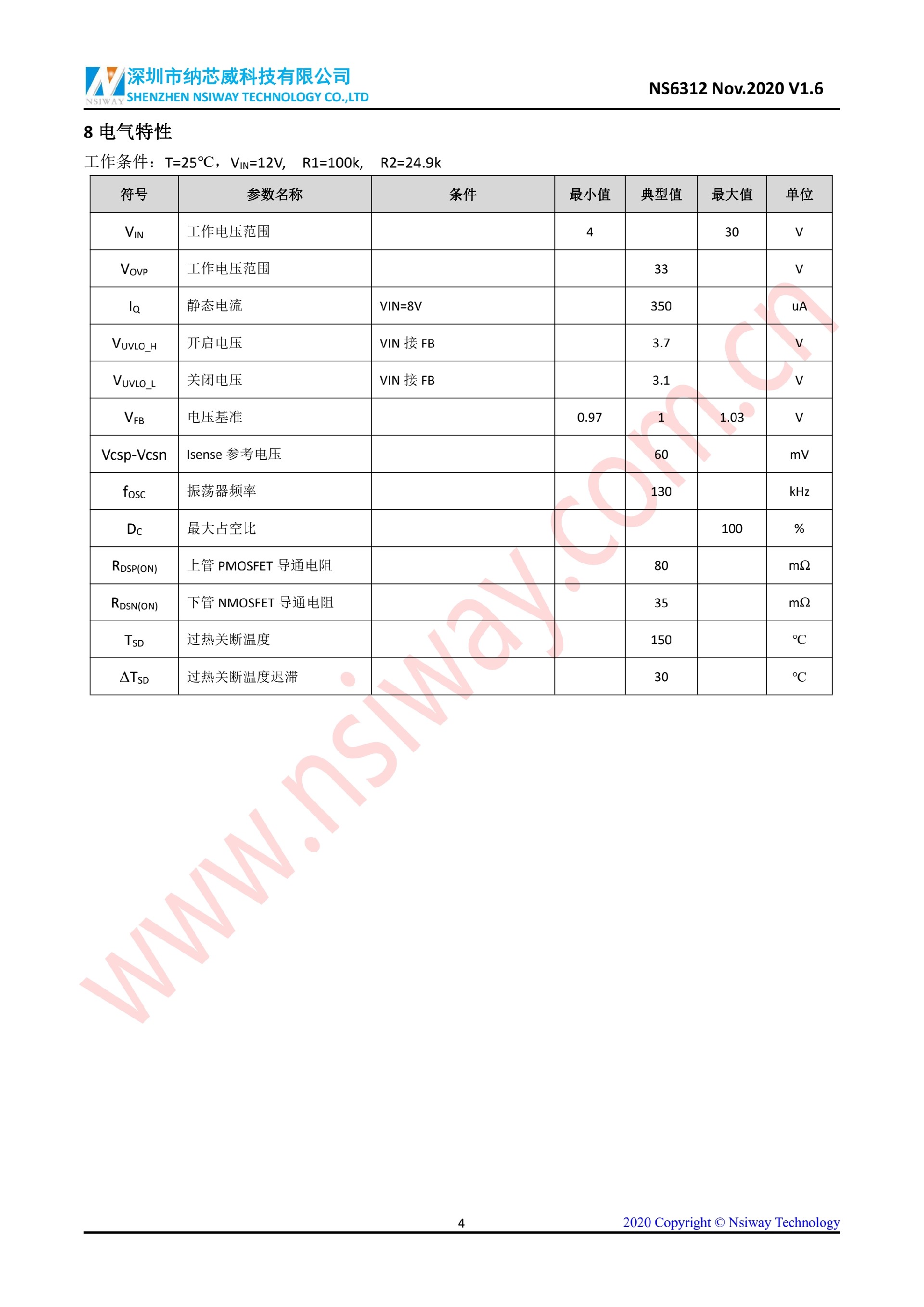 NS6312 4-30V輸入 2.4A輸出同步降壓型穩(wěn)壓器
