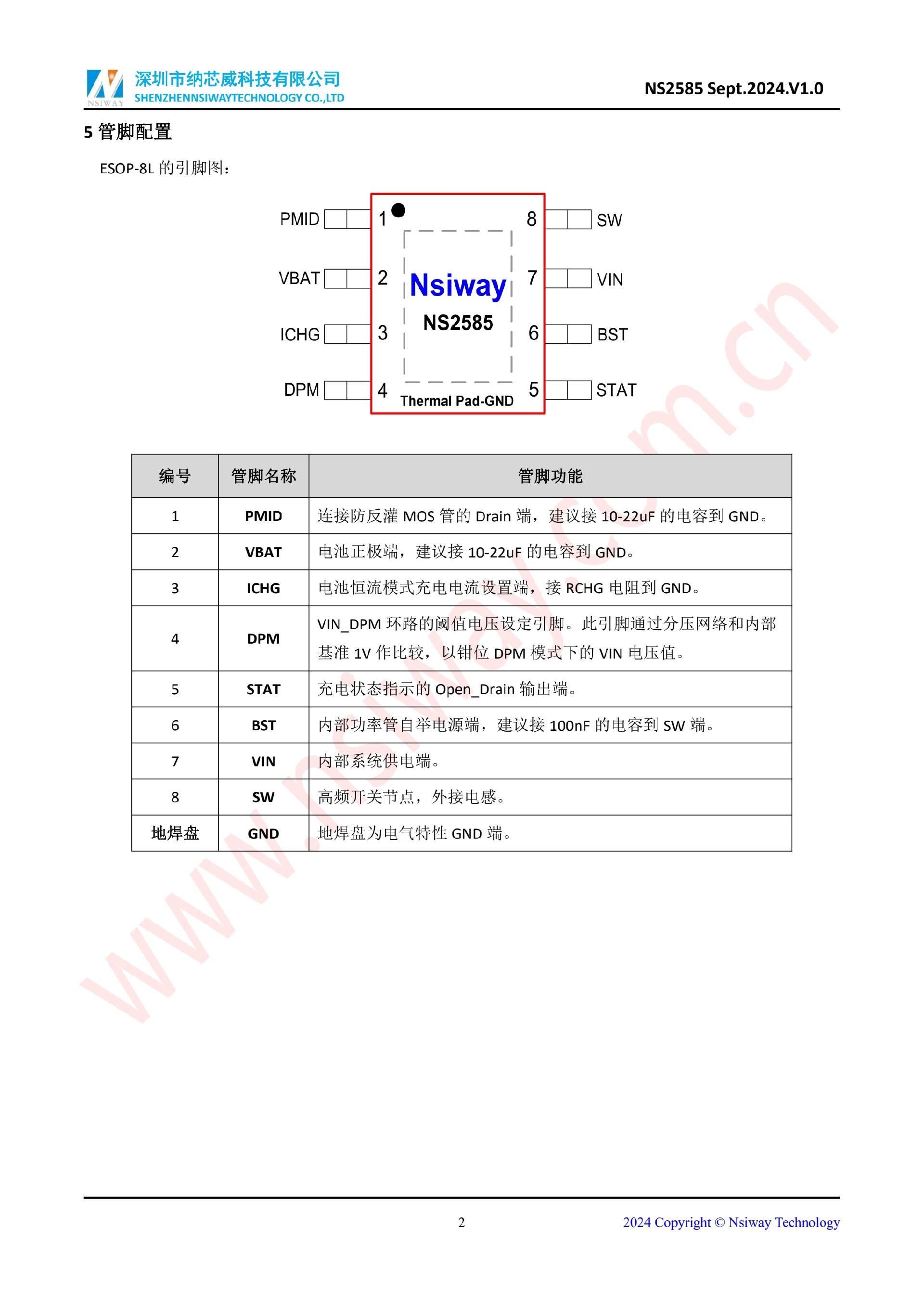 NS2585 最大2A同步升壓型雙節鋰電池充電管理 IC