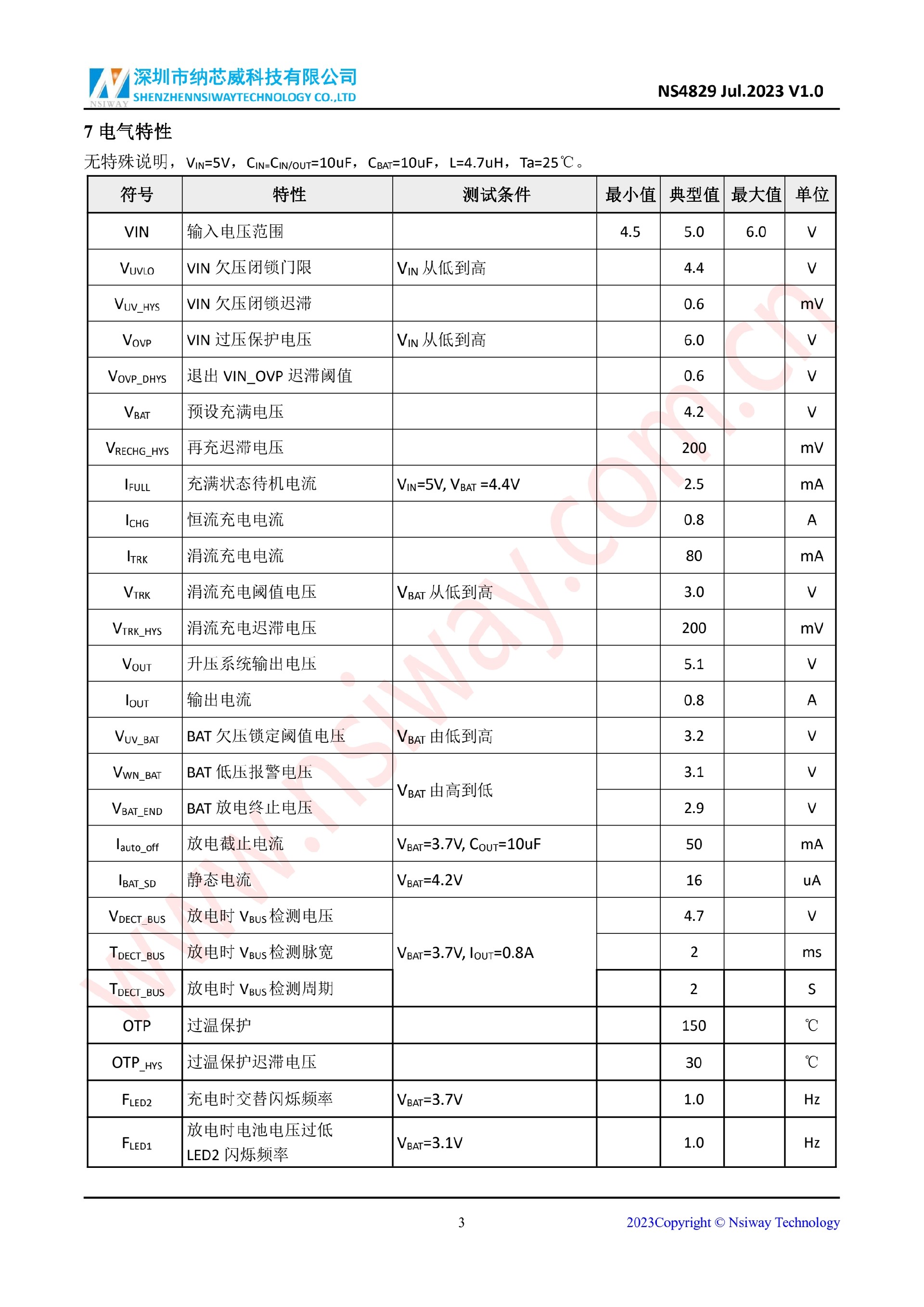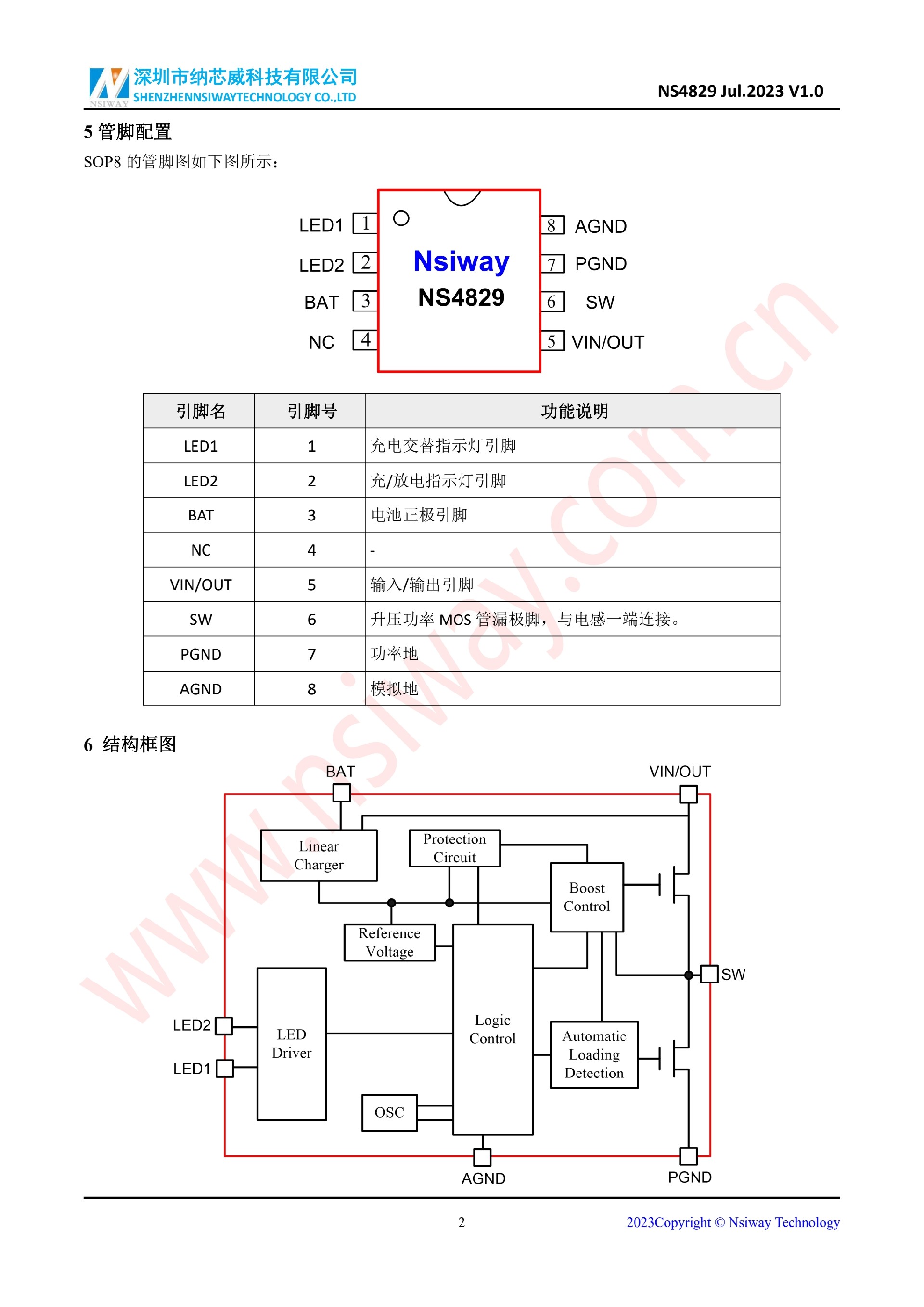 NS4829 0.8A 線性充電鋰離子電池管理芯片