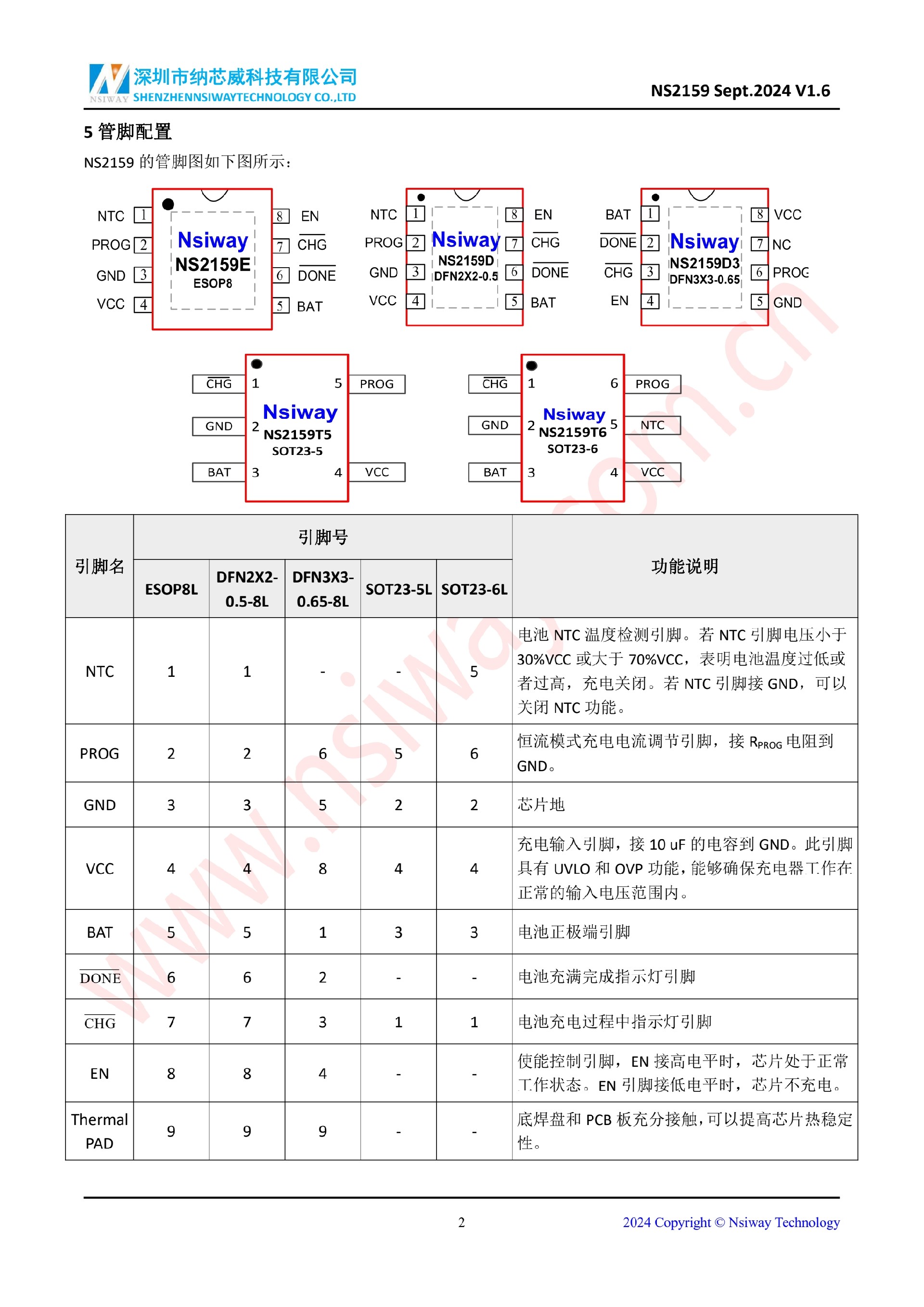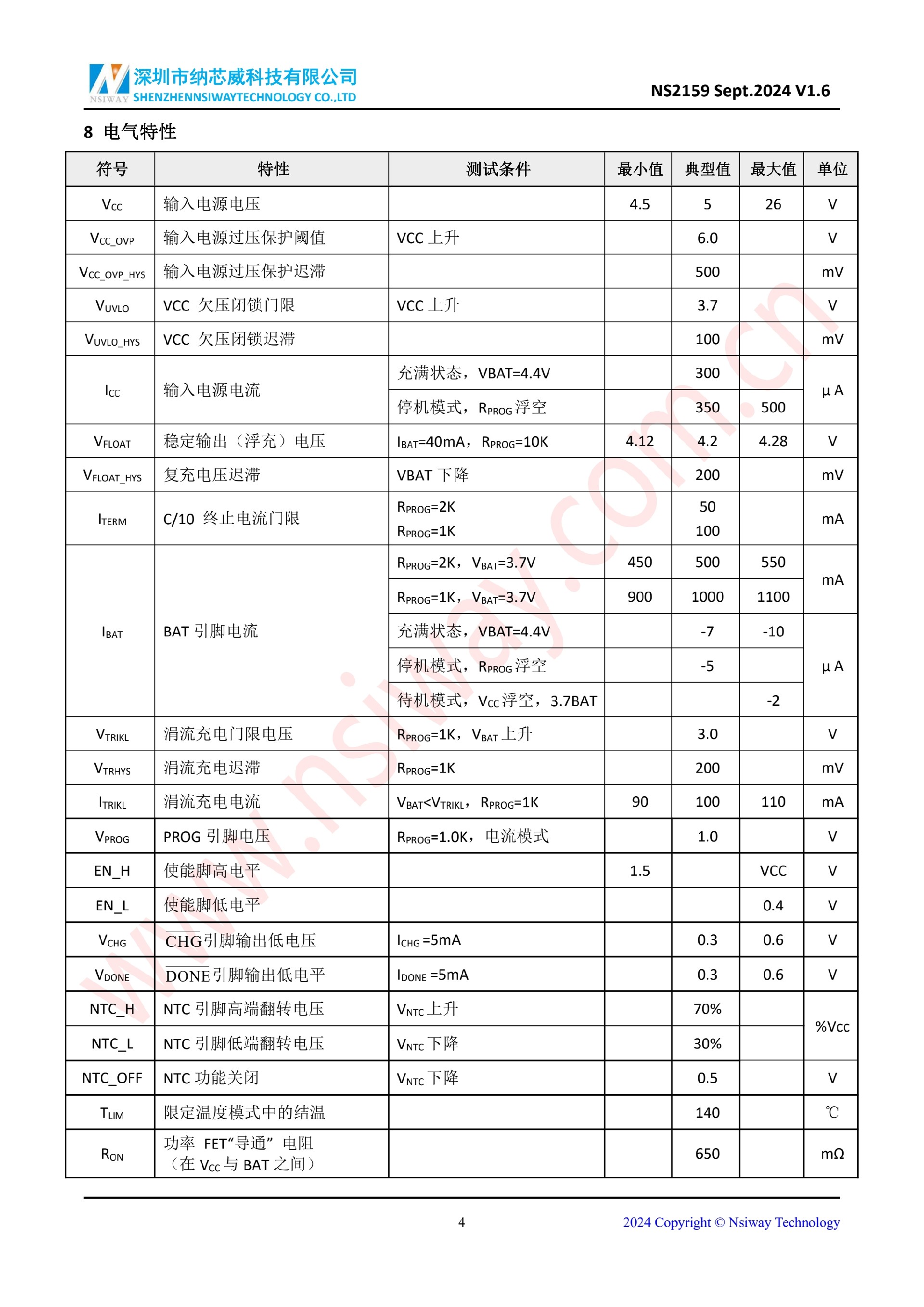 NS2159 1A 線性鋰離子電池充電管理 IC