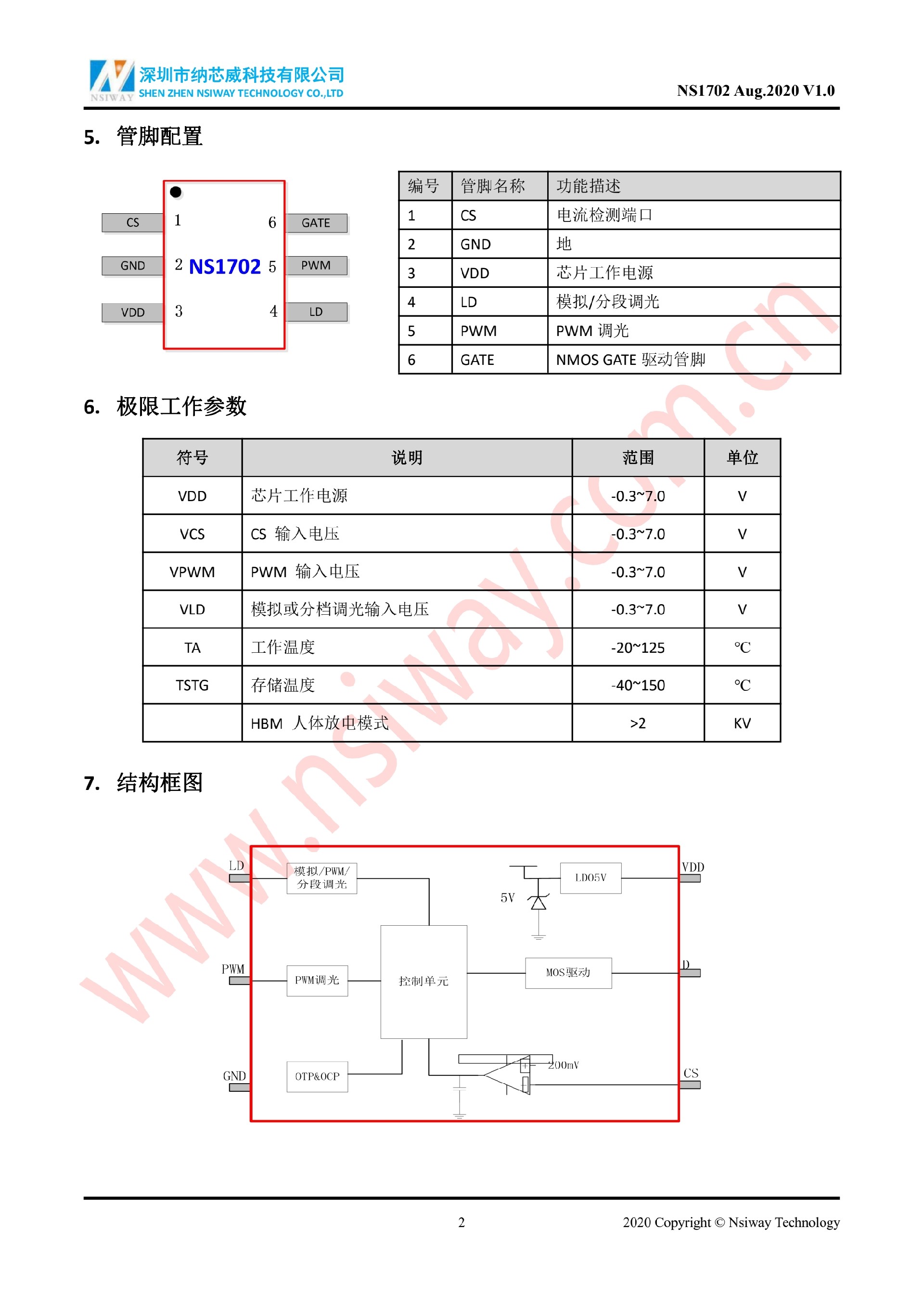NS1702 多功能平均電流型 LED 恒流驅動器(SOT23-6)