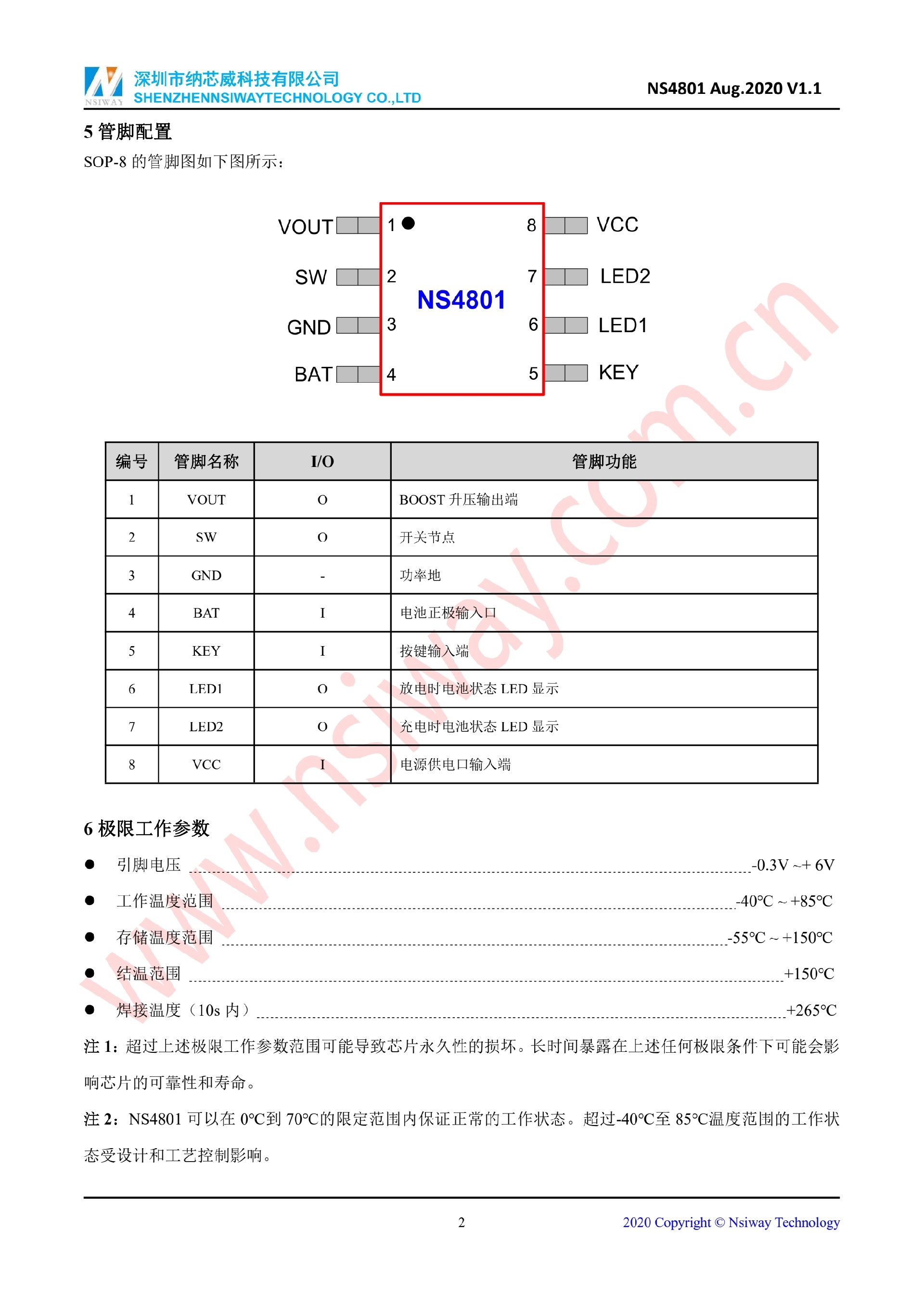 NS4801 藍牙耳機充電倉-鋰電池充放電管理IC(PWM)