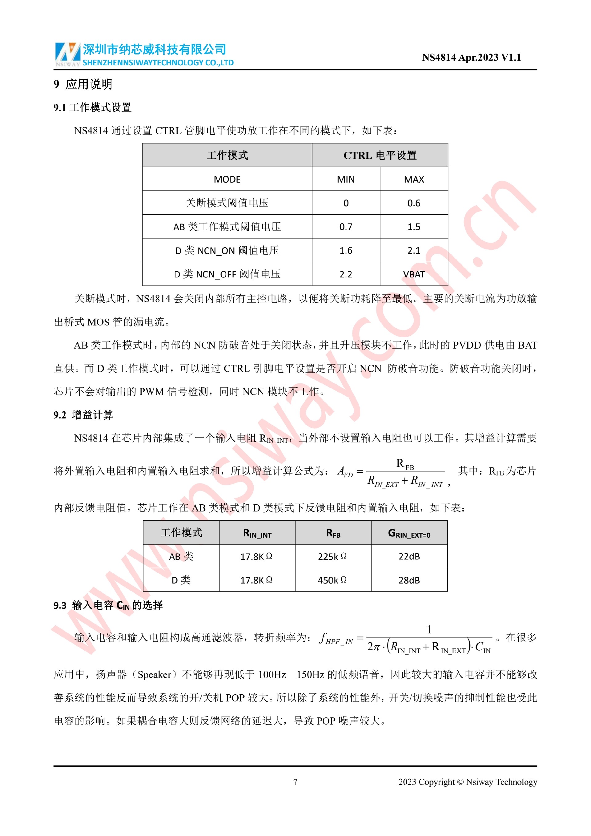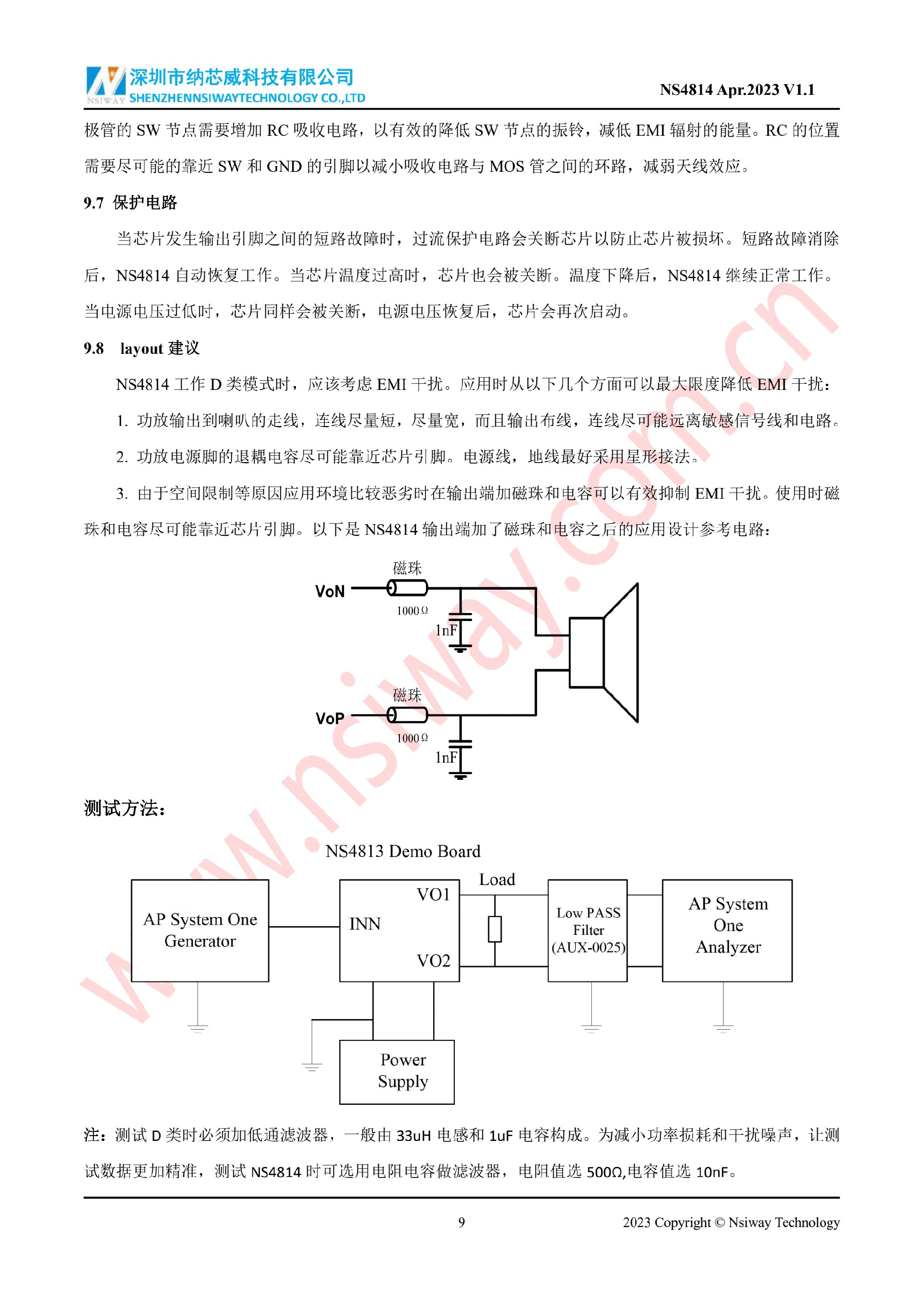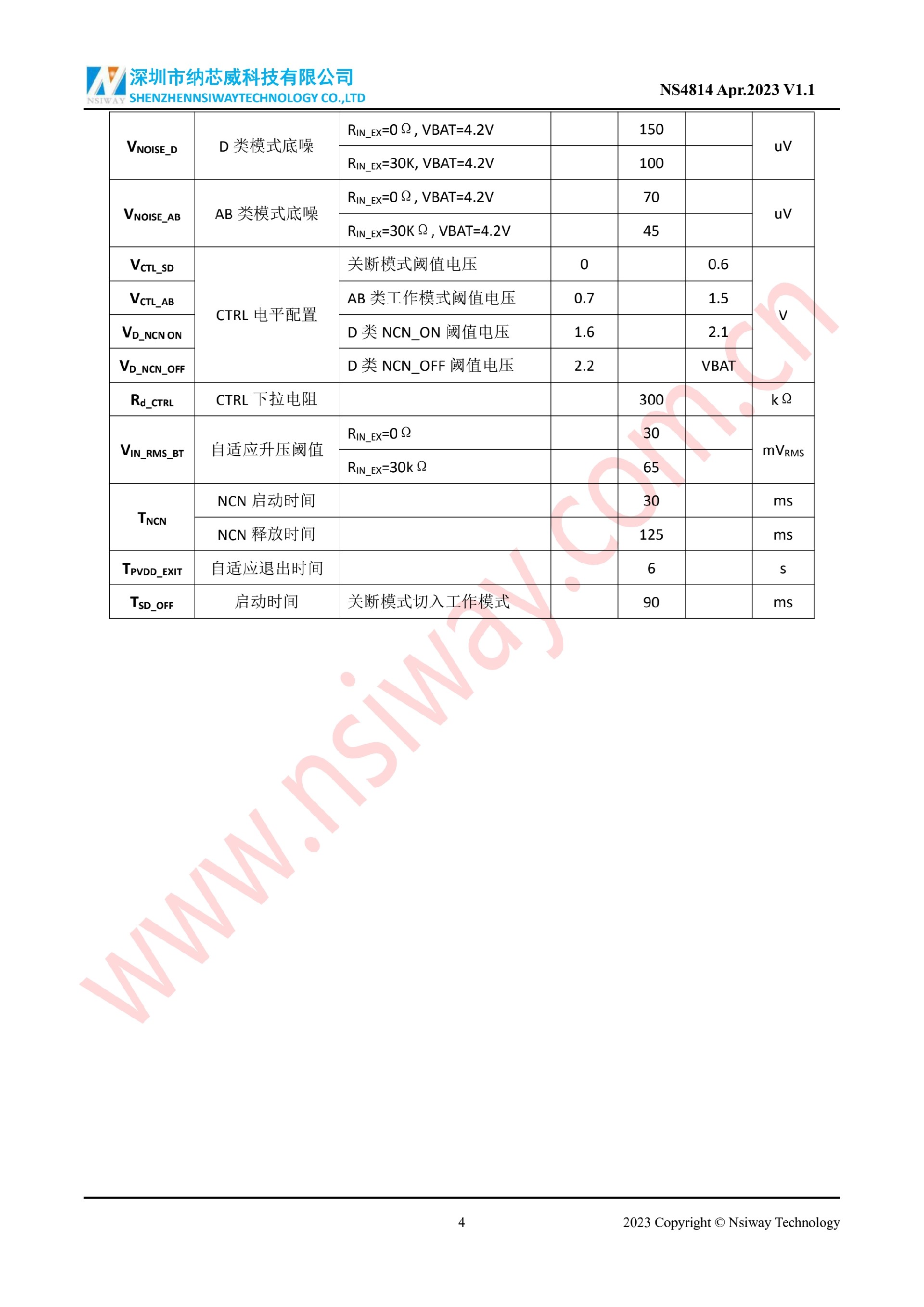 NS4814 單聲道AB/D 類音頻功率放大器(內置BOOST升壓和NCN功能)