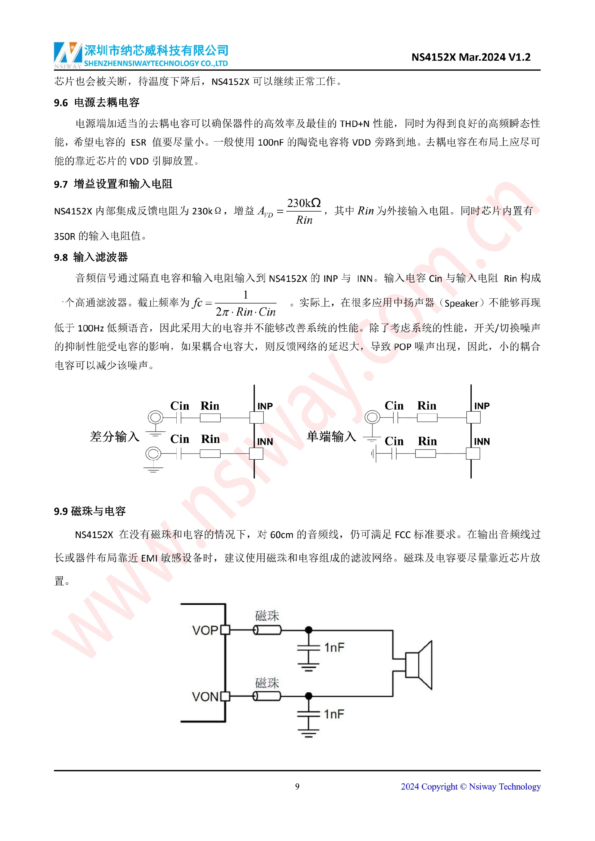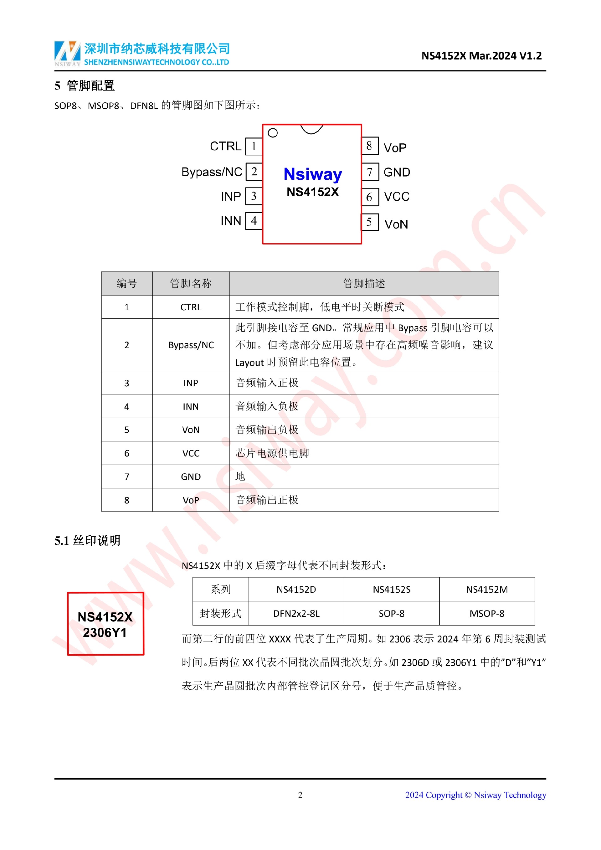 NS4152X 3.0W 單聲道 D 類音頻功率放大器