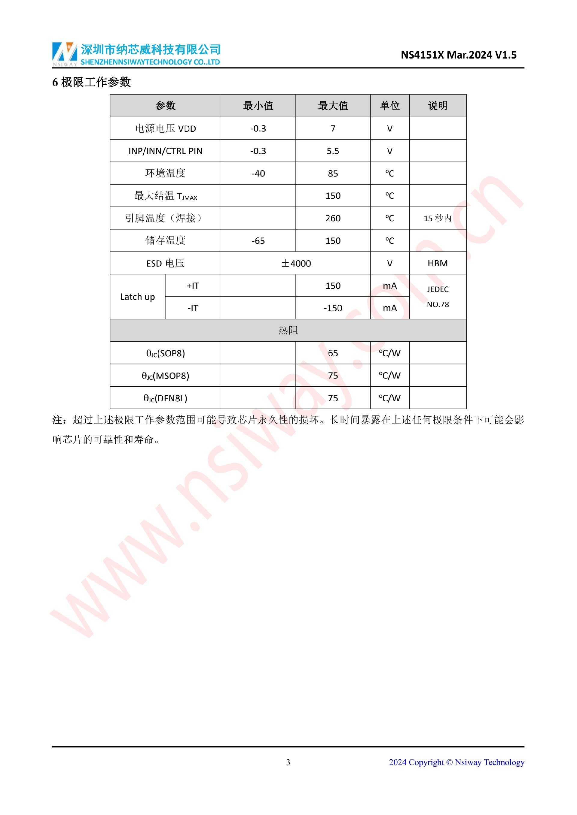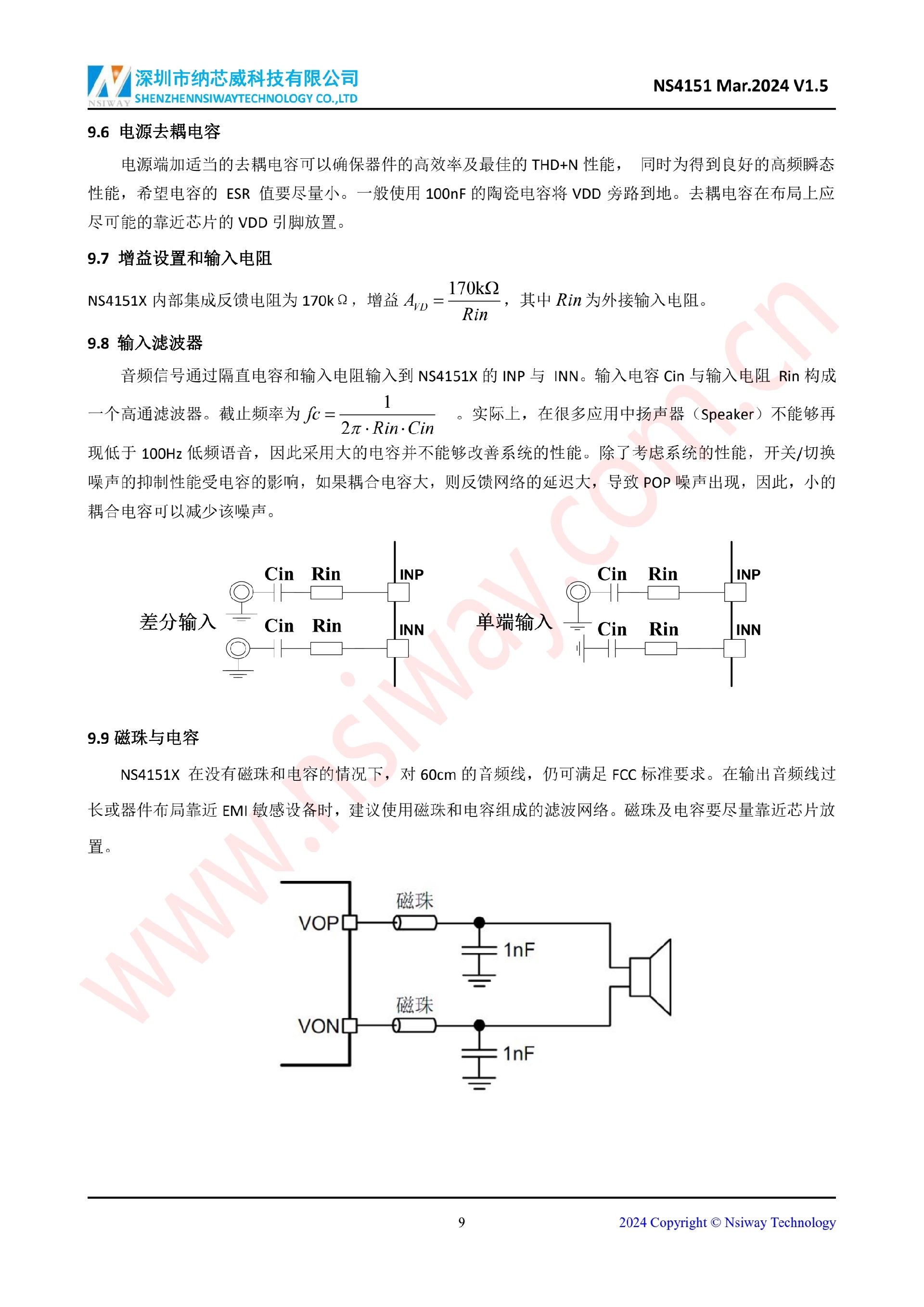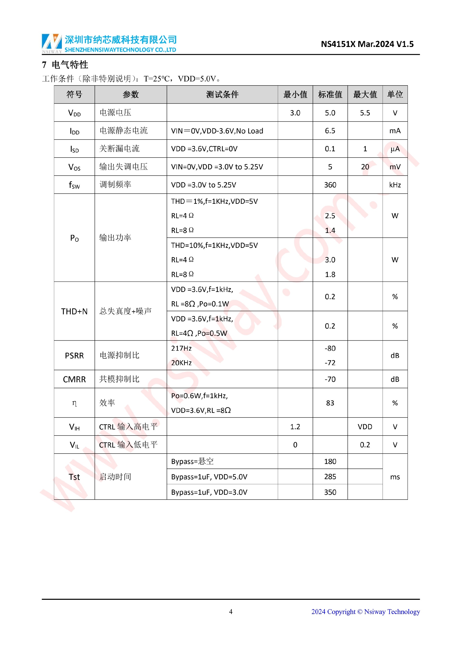 NS4151X 3.0W 單聲道 D 類音頻功率放大器