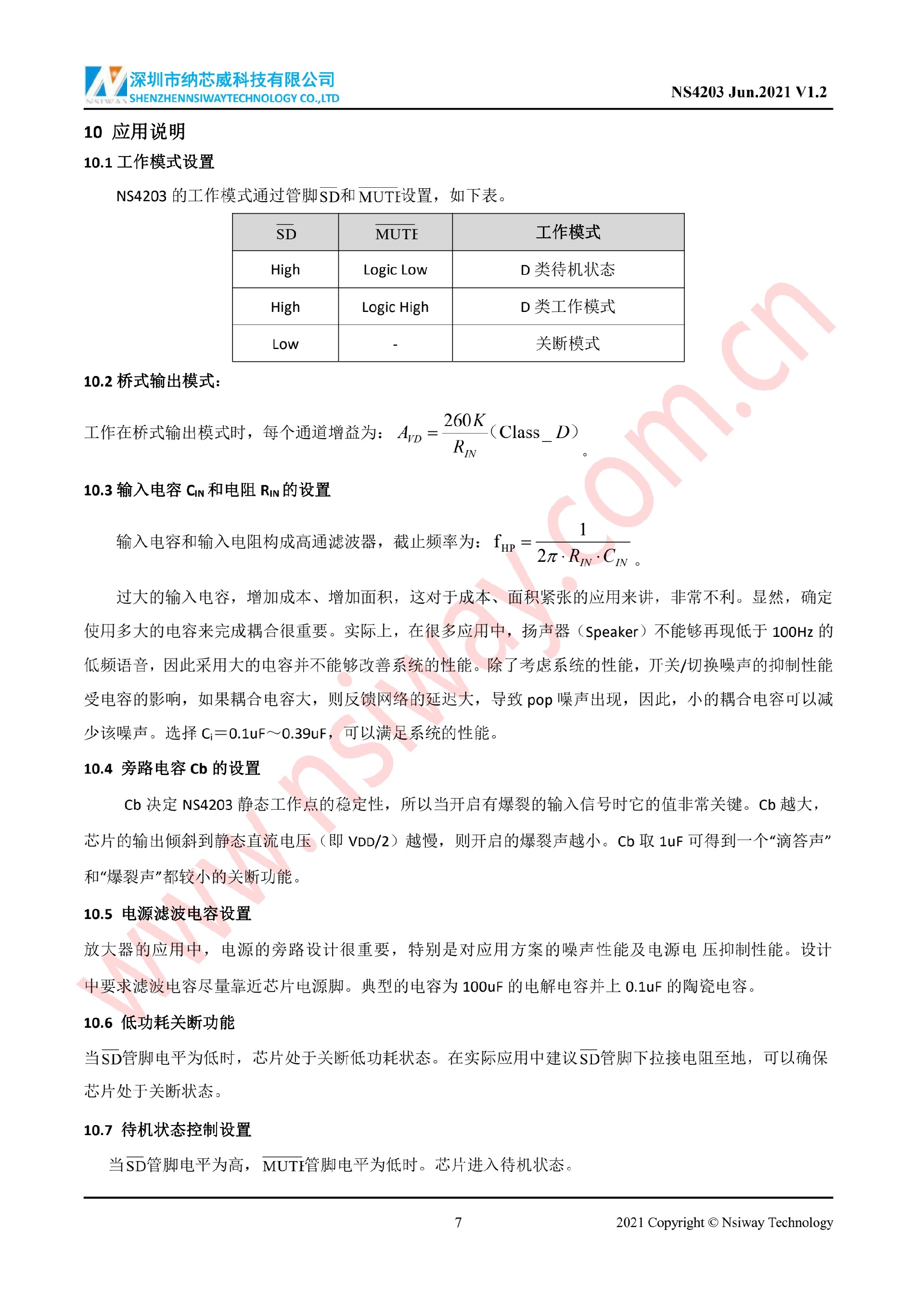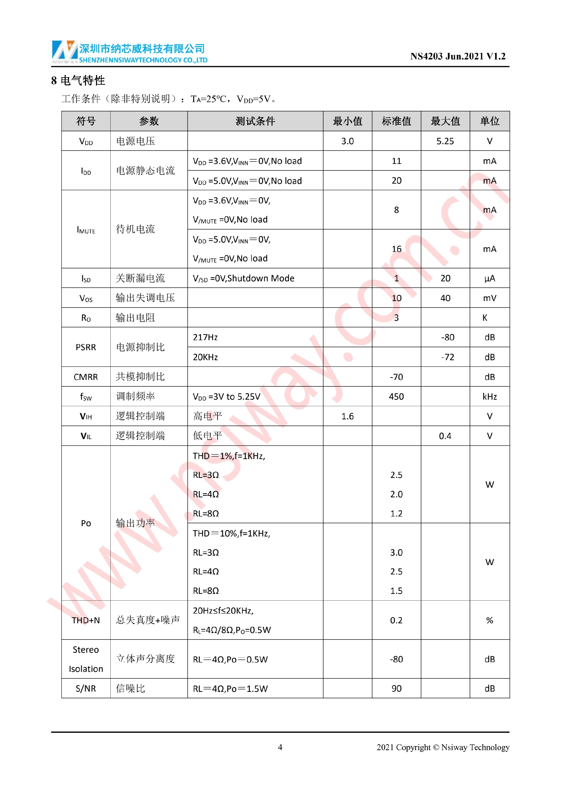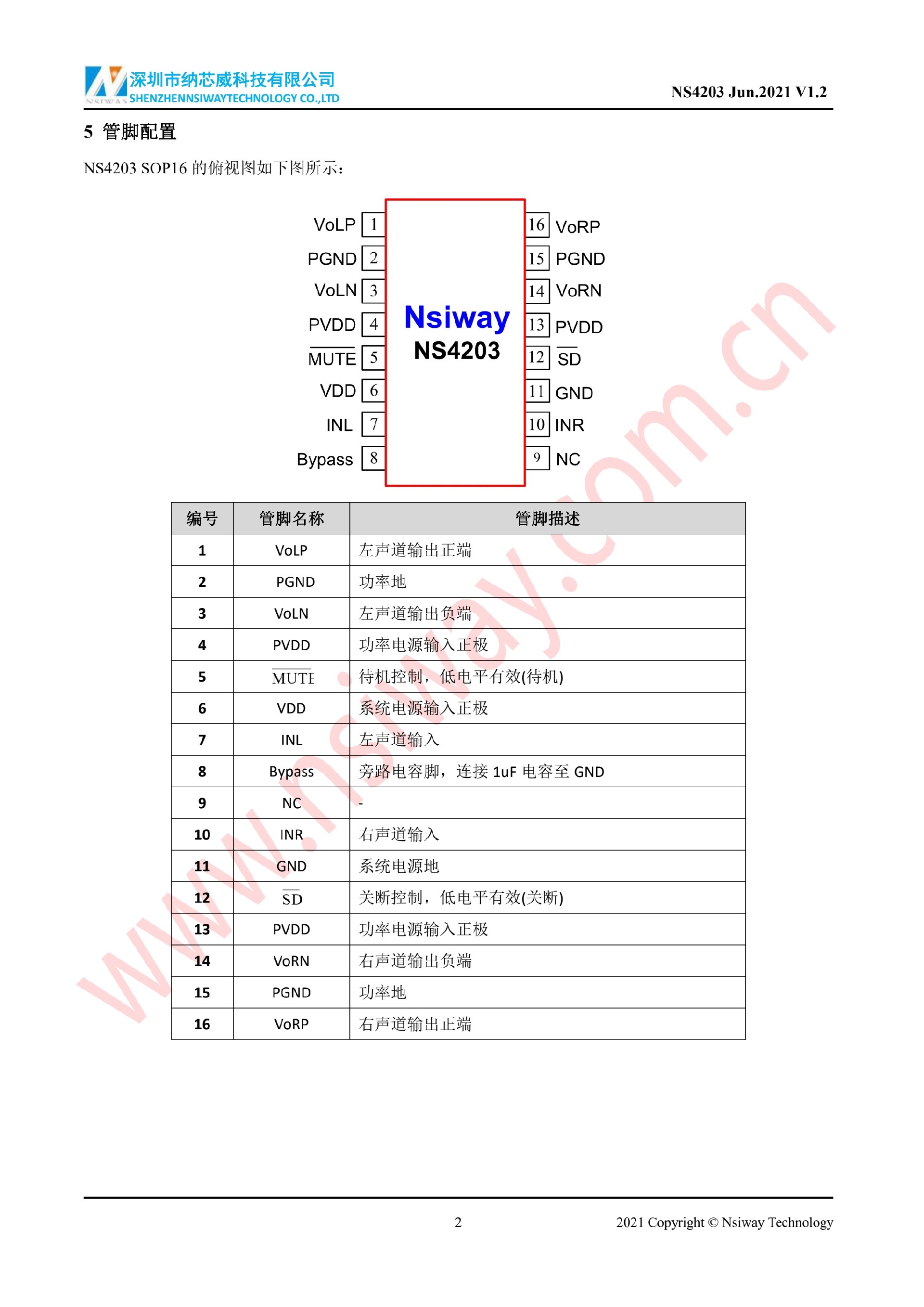 NS4203 3W×2 雙聲道D類音頻功率放大器附加MUTE功能