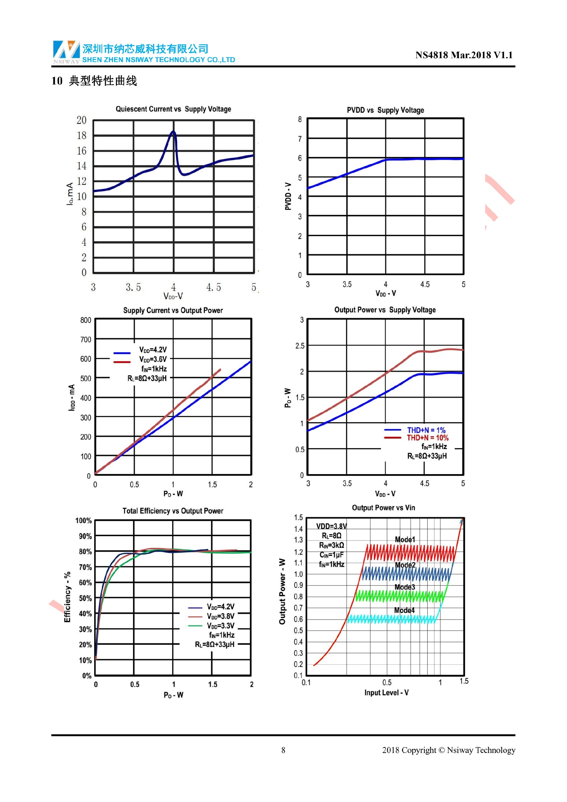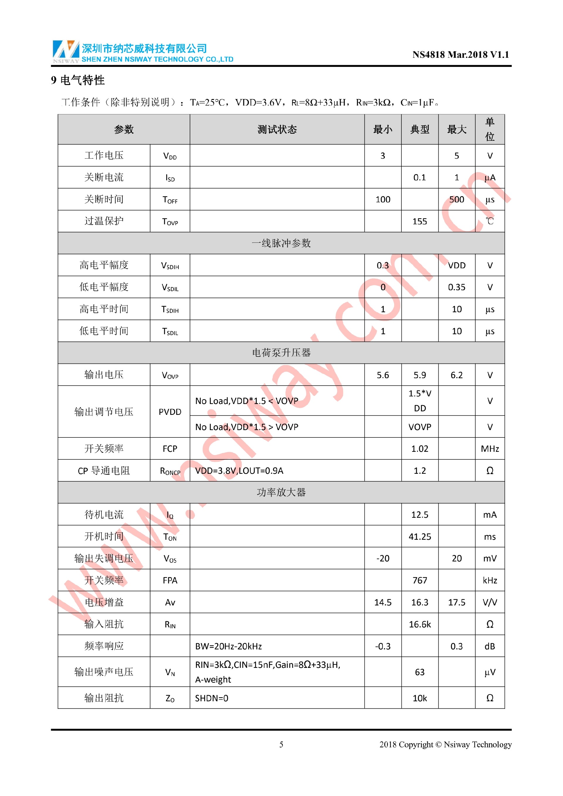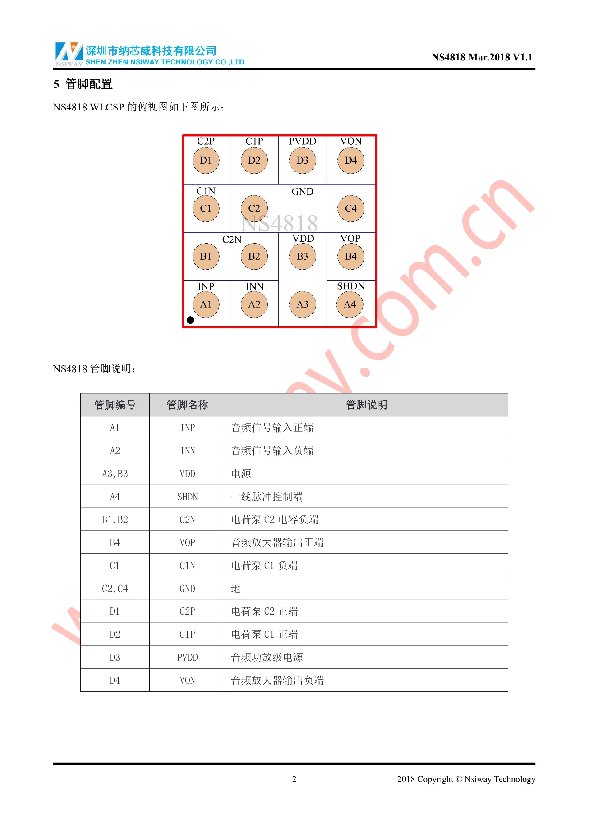 NS4818 單聲道五級恒定輸出功率G類音頻功率放大器(WLCSP)