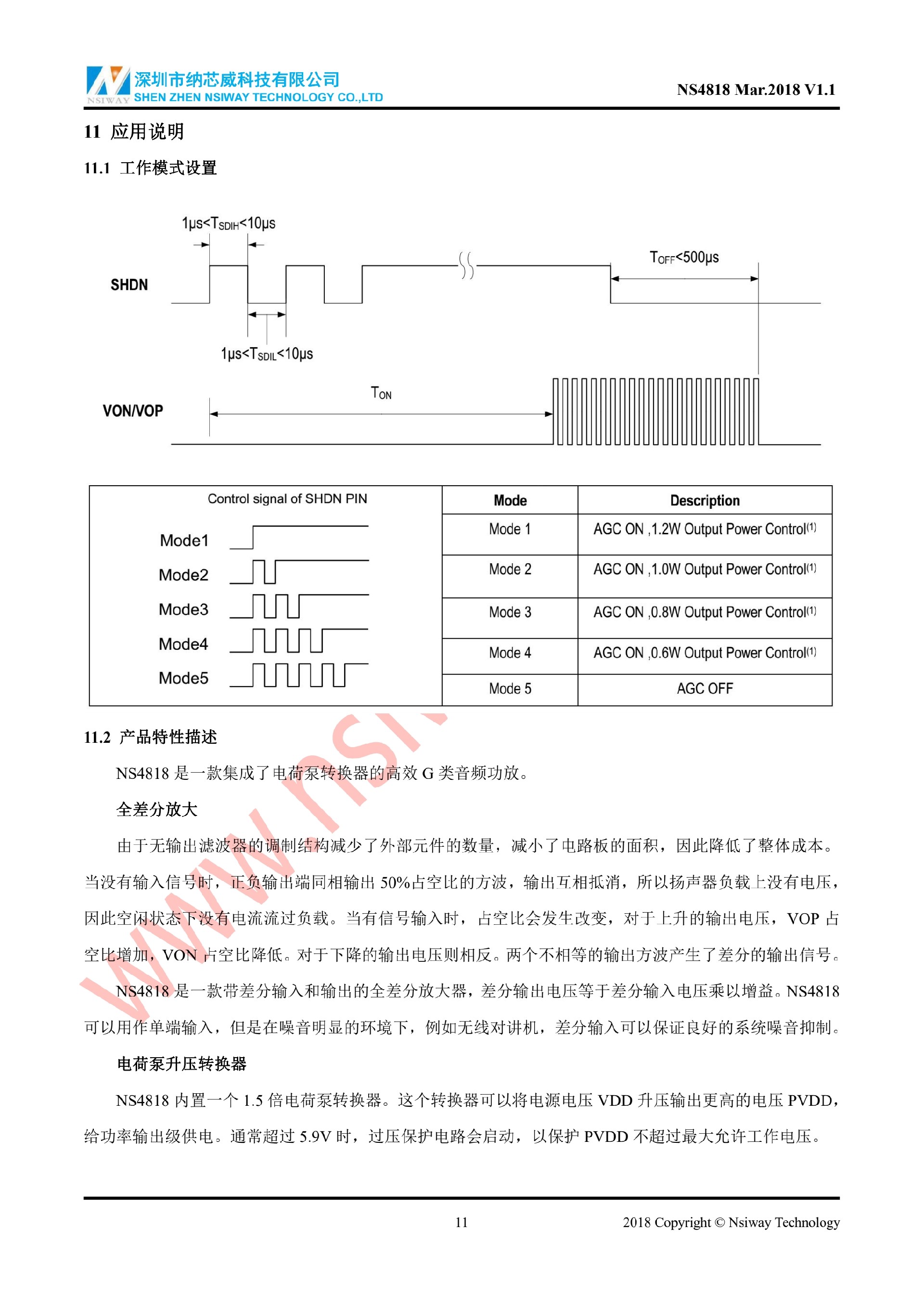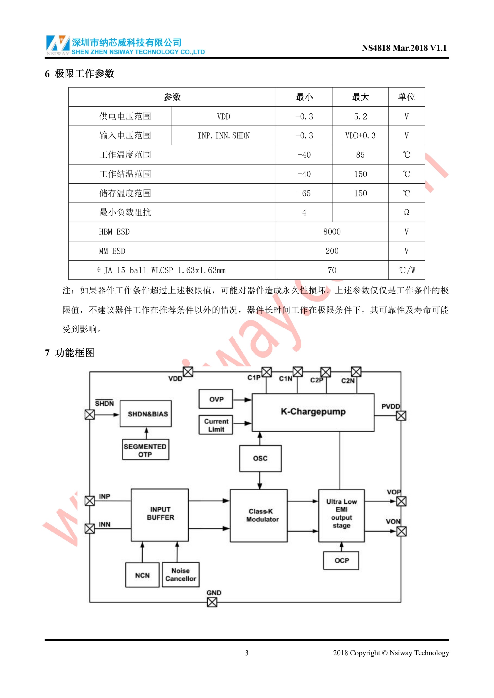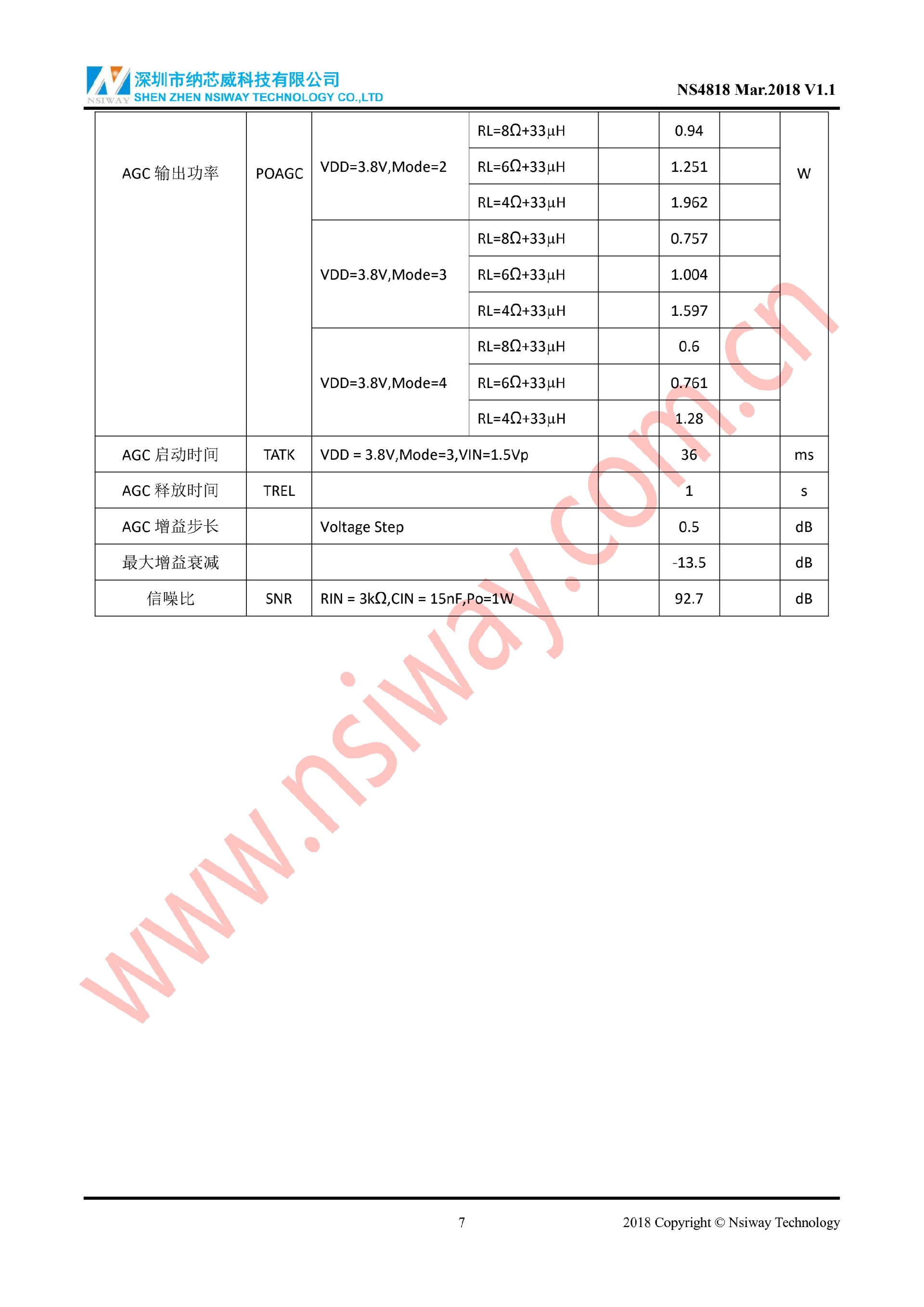 NS4818 單聲道五級恒定輸出功率G類音頻功率放大器(WLCSP)