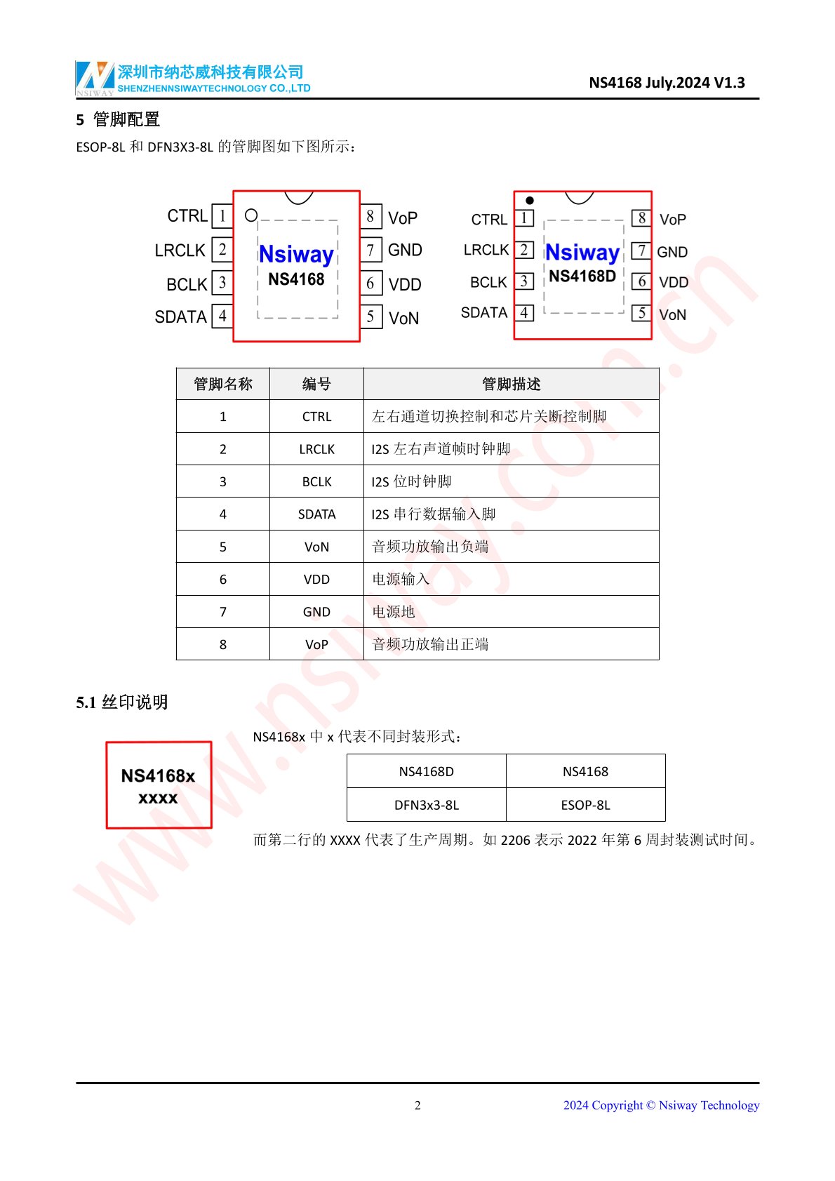 NS4168 2.5W -I2S數(shù)字輸入單聲道D類音頻功率放大器(eSOP-8)