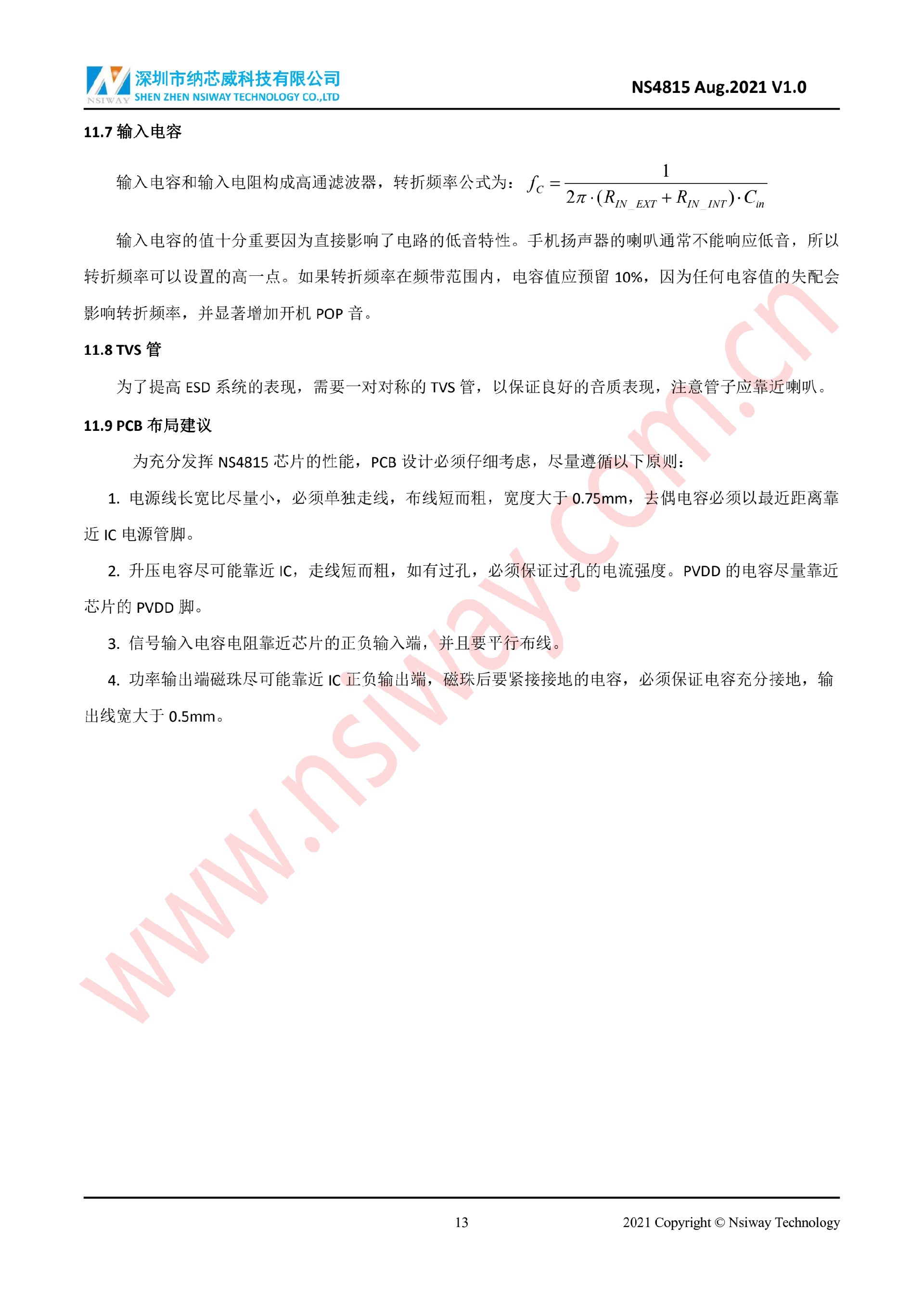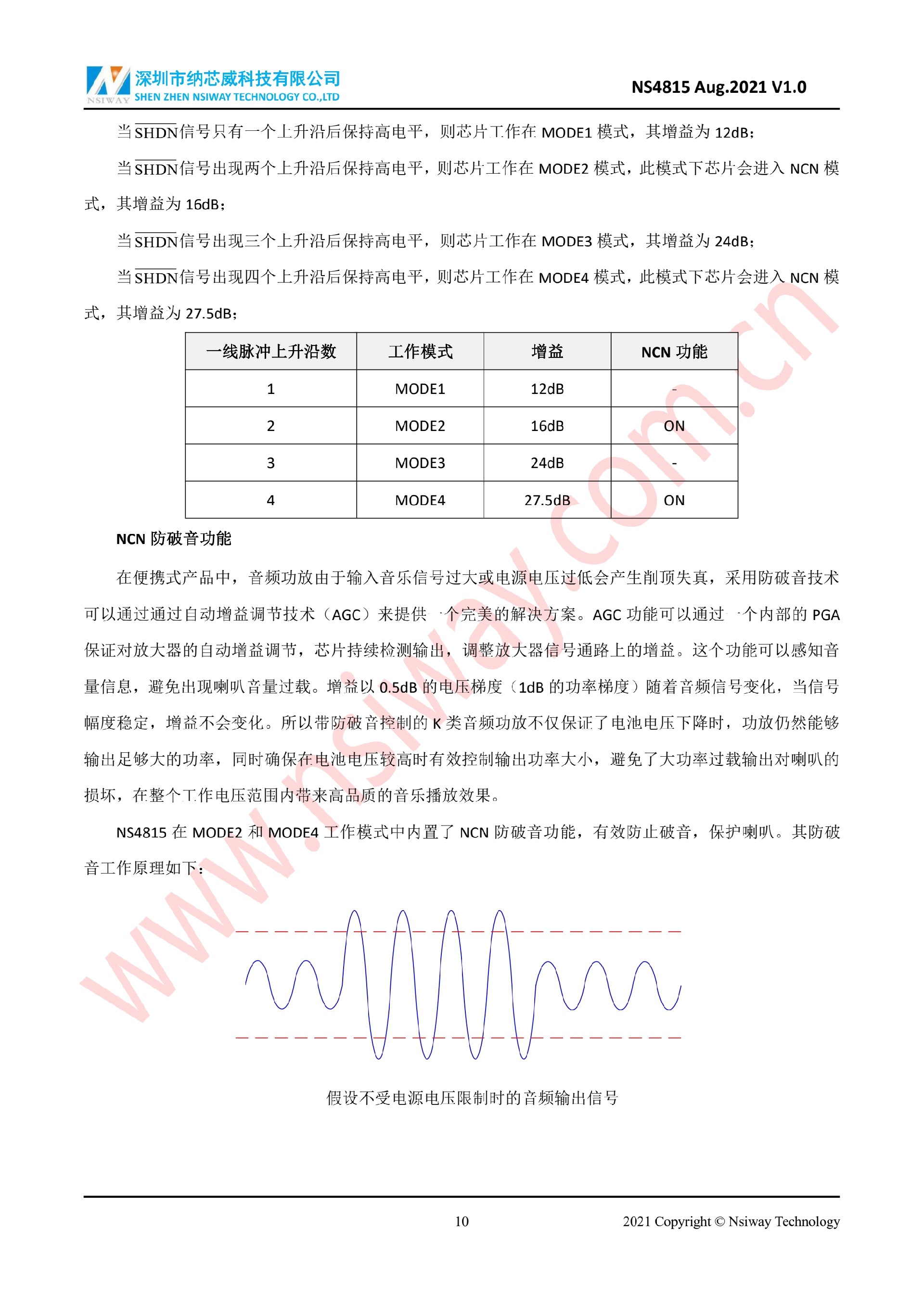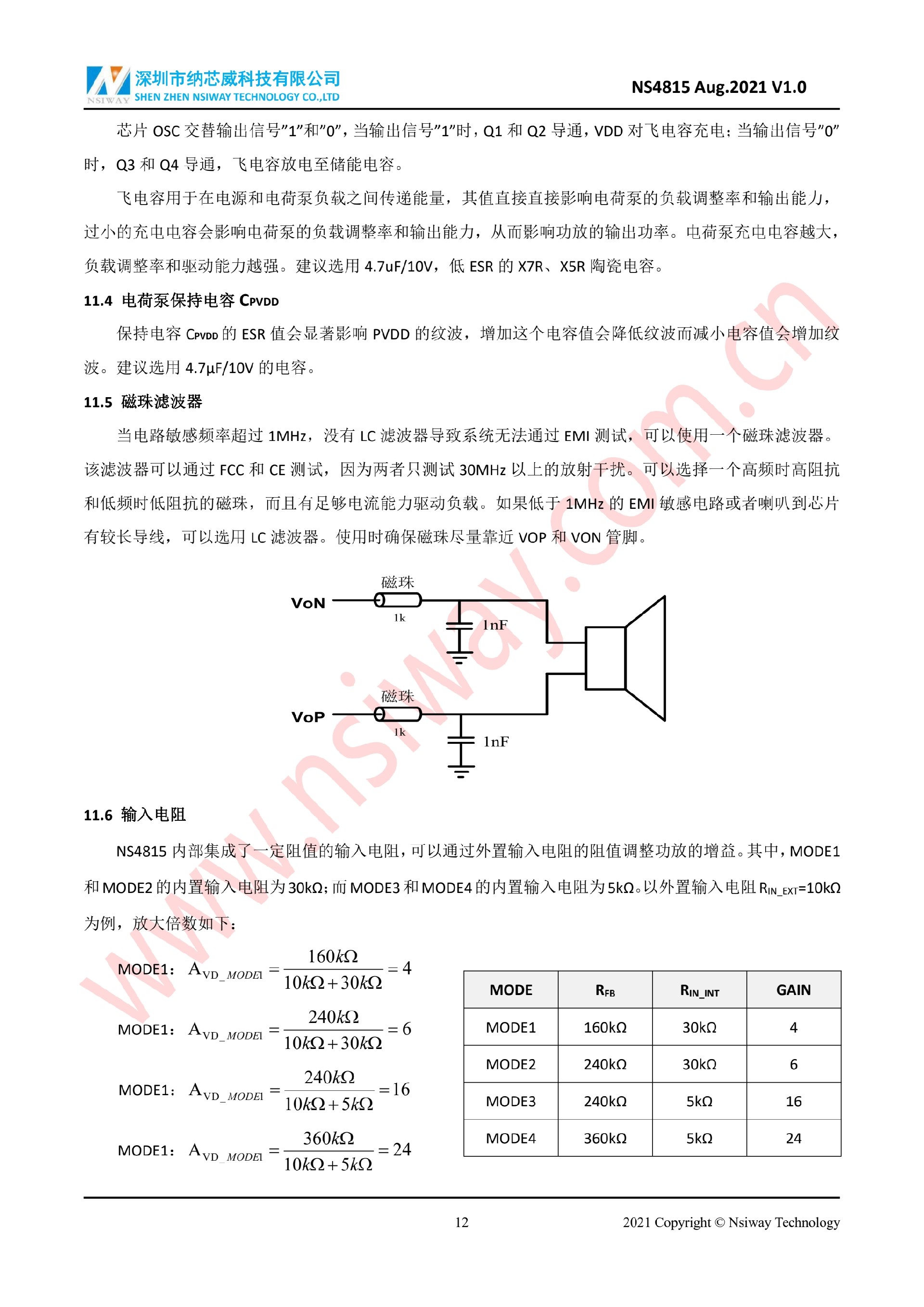 NS4815 2W 輸出功率 K 類音頻功率放大器